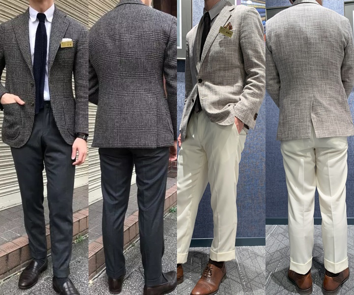 着丈の長さは必ずしも一般的な長さに限定されるわけではなく、シーンによって変化を付けることができます。短めの着丈と長めの着丈それぞれの印象について紹介します。