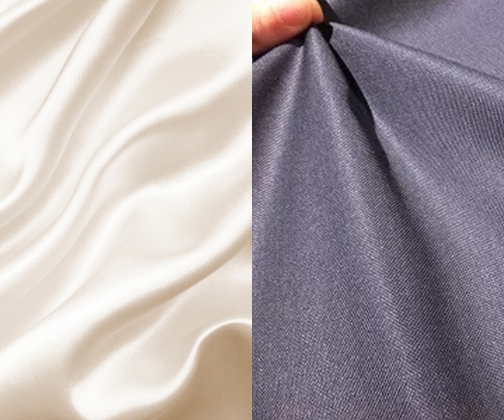 ・ギャバ(画像左上)・・・非常に細かな綾目が特徴で、光沢としなやかさを併せ持つ生地。
