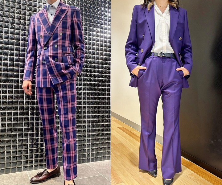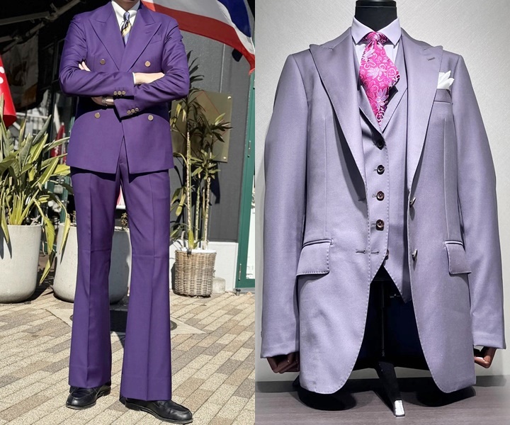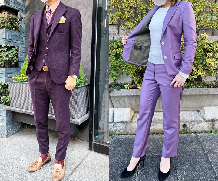 ビジネスシーンではあまり目にしない「紫(パープル)スーツ」。意外にもパーティーシーンやカジュアルシーンでは、上品な印象を与えながらも個性を演出できるため、多くのお洒落上級者の方に選ばれているようです。