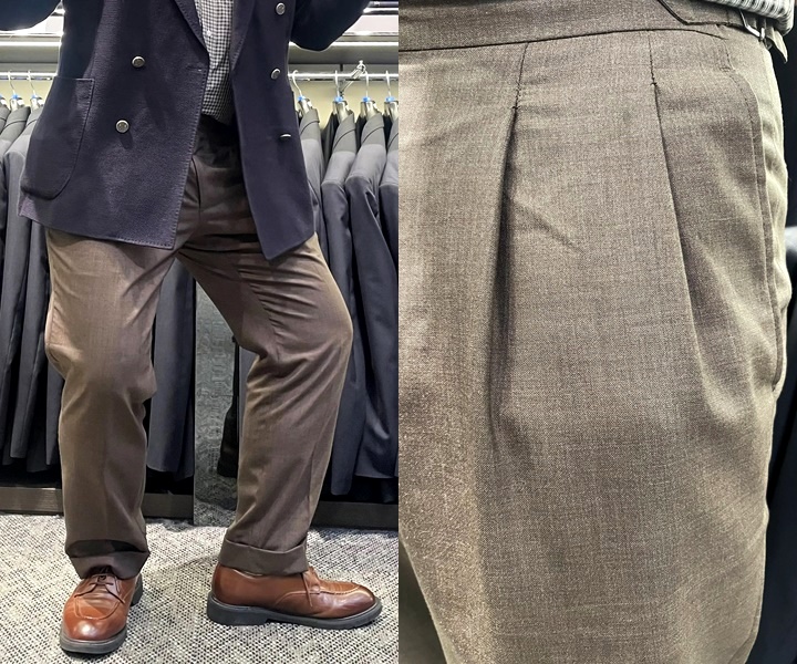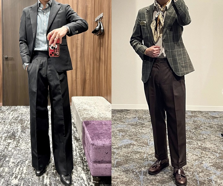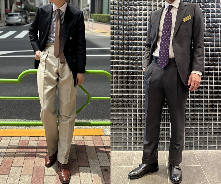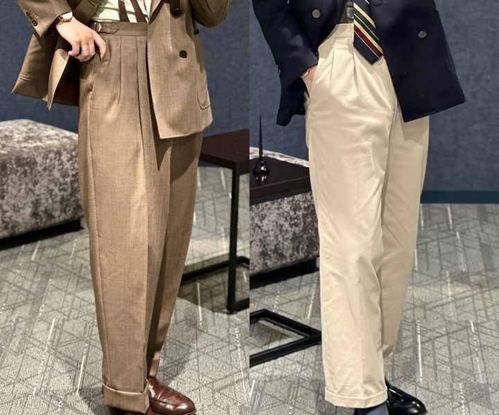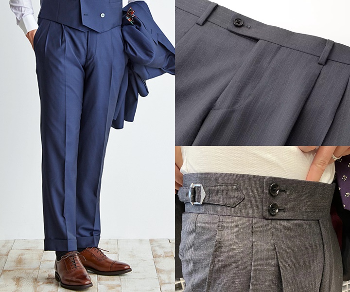 1. スリーピーススーツ×ツータックパンツ、ダブルスーツ×ツータックパンツ