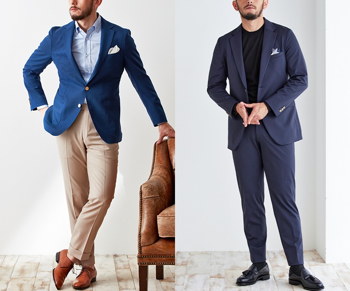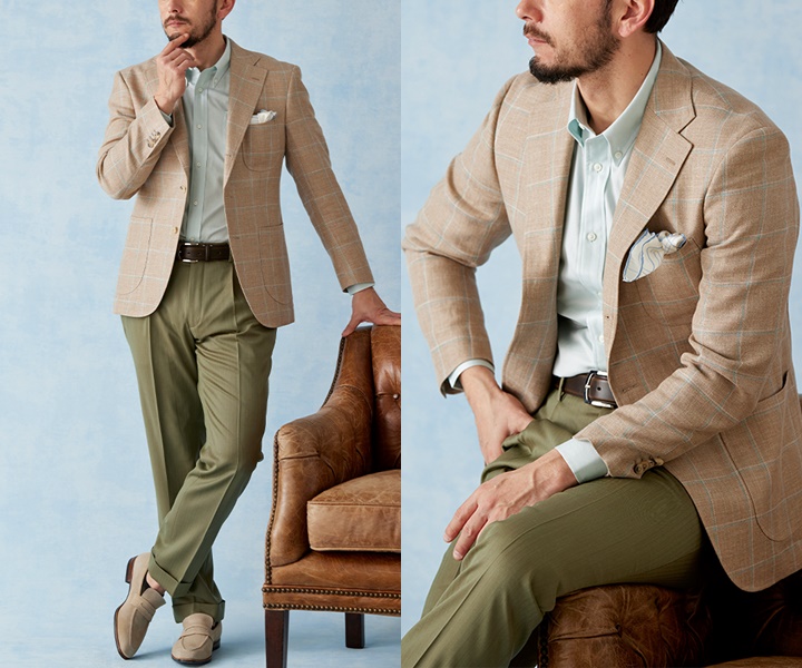 ジャケット&パンツ(ジャケパン)は、上下同一ではないジャケットとパンツを組み合わせたスタイルです。ジャケットとパンツの色選びが重要となり、相性が良い色を選んで全体の統一感を意識しましょう。