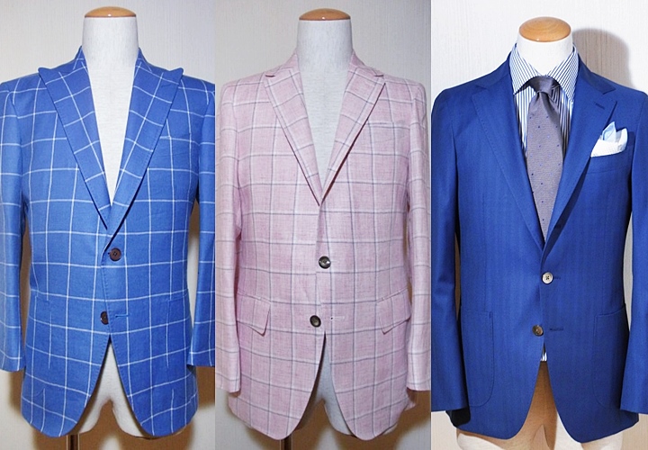 Super130’sと細番手の生地で、イタリア独自の発色の良さとしなやかな肌触りが絶妙に感じられます。春夏は、定番柄だけではなく、仕立て映えする個性的な色柄はオススメです。細番手の生地はとても綺麗なので、爽やかで清涼感溢れる色柄が特徴です。夏生地の定番 “モヘア混” は涼し気な雰囲気になります。