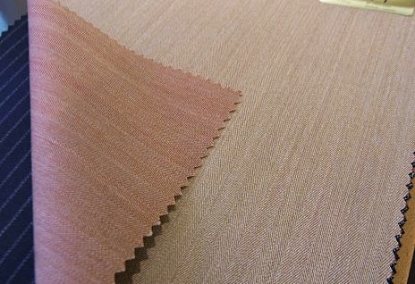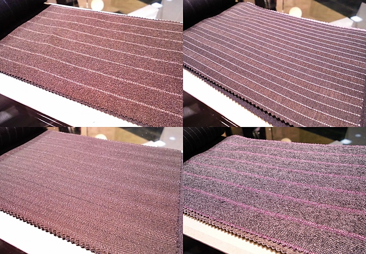 ウール75%、シルク25%の混率で光沢が強くかなり華やかな生地。シルクの光沢を活かすために生地のフェニッシングは手作業で行い、見栄え良い生地になります。