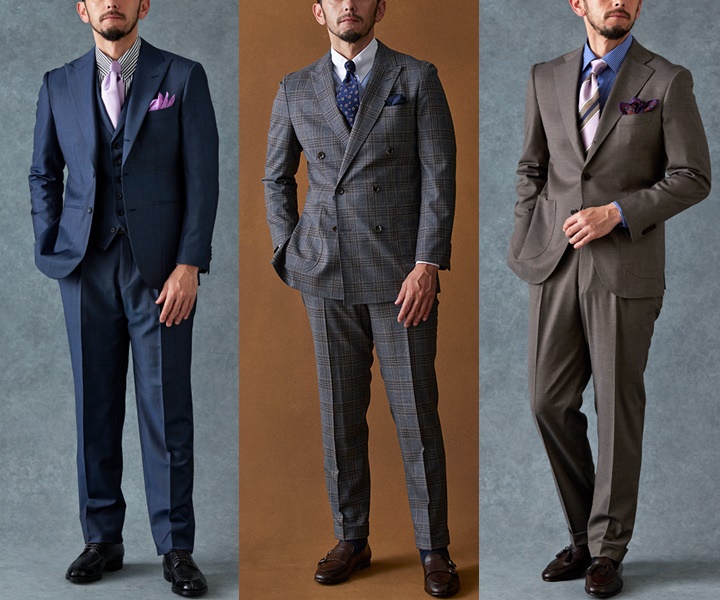 クラシックなデザインが特徴です。ネクタイやポケットチーフなどのアクセサリーは控えめですが、
