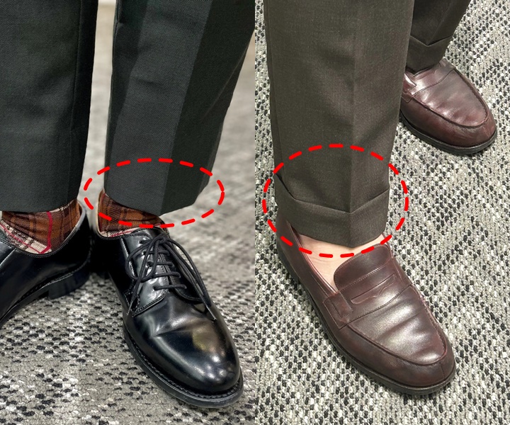 (左:既製品のパンツ、右:オーダーパンツ)股下の長さが平均より短い場合