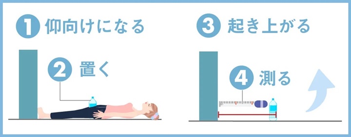 ・かかとを壁にぴったりとつけて仰向けに寝る