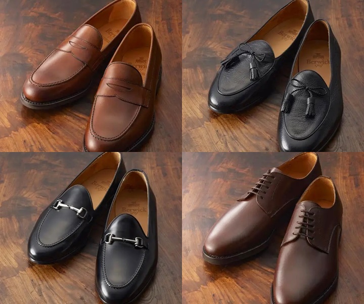 (左上:コインローファー、右上:タッセルローファー、左下:ビットローファー、右下:プレーントゥ)