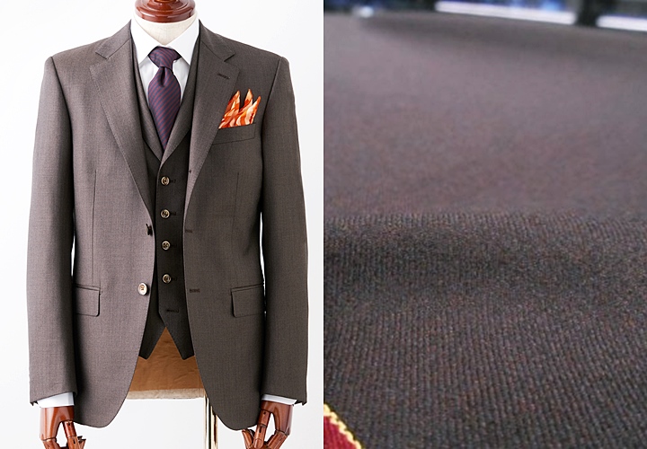 選ぶ色あいによって多少変わりますが、遠目からだとほとんど無地のようなに見えます。自然と着数が多くなる無地。少し変わった織柄のスーツでバリエーションを広げて見るのも良いかもしれません。