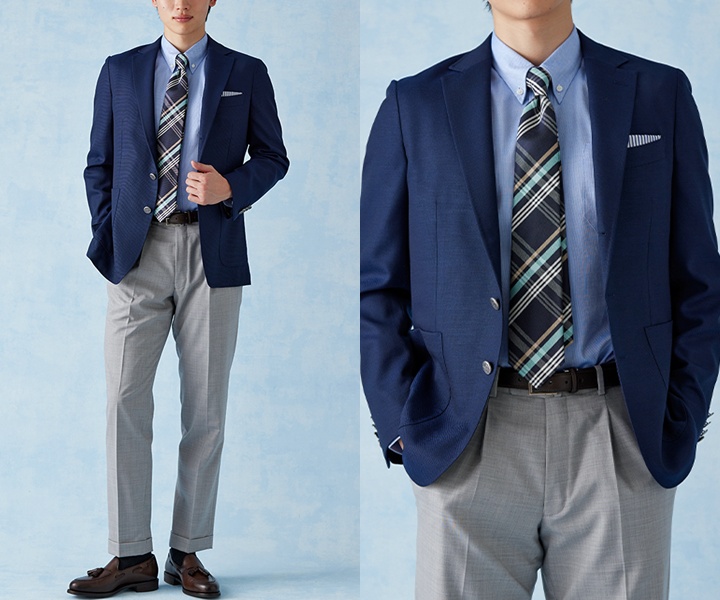 タータンチェックスーツは、色の組み合わせによって季節感を表現できるのも魅力の一つです。春夏にはベージュやグリーンなど、明るく軽やかな色合いのタータンを選ぶと、爽やかで涼しげな印象に。秋冬にはブラウンやダークグリーンなど深みのある色を取り入れると、落ち着いた雰囲気を感じさせます。タータンチェックは配色によって印象が大きく変わるため、シーズンごとに異なる柄を楽しむのもおすすめです。季節感と個性を両立できるのは、タータンチェックならではの楽しみ方といえるでしょう。