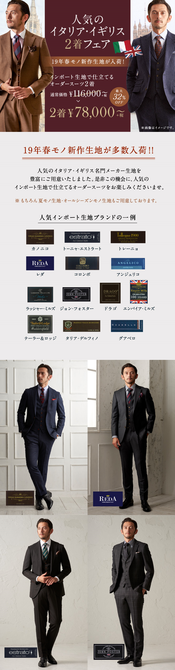 ▶人気ブランドの生地を使用したオーダースーツがまとめ買いでお得に