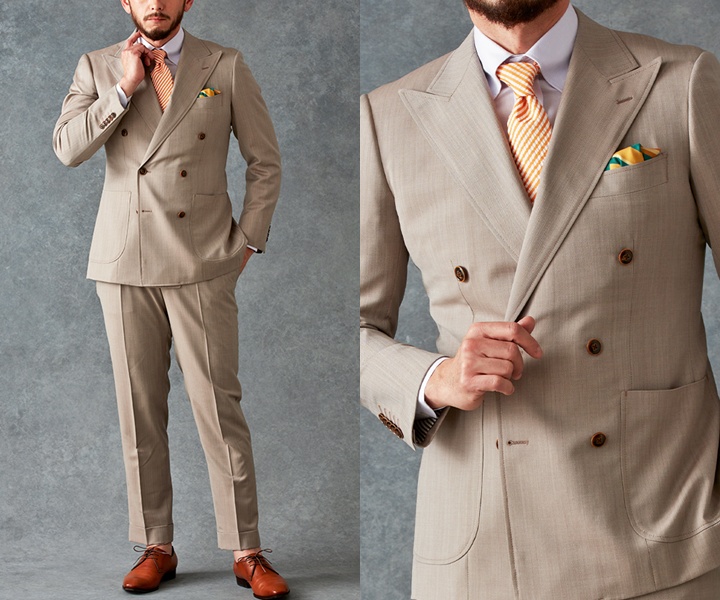ESFP(エンターテイナー)|ベージュ×ヘリンボーンスーツ