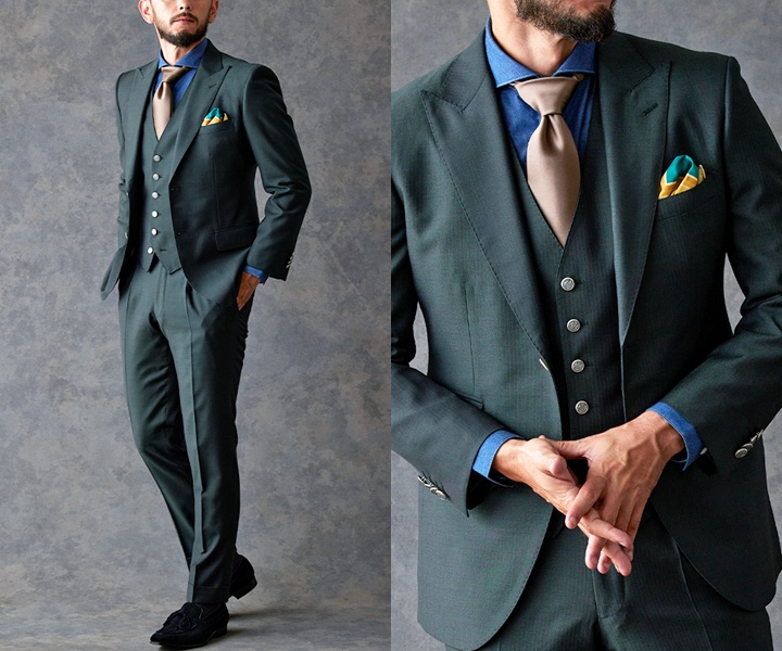 ISFP(冒険家)|グリーン×ヘリンボーンスーツ