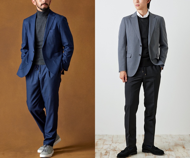 居酒屋やカジュアルな会場で開かれる同窓会は、親しみやすさやリラックス感が重視されます。そのためスーツほどかしこまらずにきちんと感を出せる、セットアップやジャケパンスタイルが良いでしょう。上下が揃ったセットアップには、デザインにまとまりがあるため、フォーマルすぎずラフすぎない雰囲気を演出できます。ジャケパンスタイルは程よい抜け感を出したい方におすすめです。ネイビーやグレーのジャケットに、同色もしくはブラックなど落ち着いたトーンのパンツを合わせると、清潔感がありつつも、程よいカジュアルさを演出できます。
