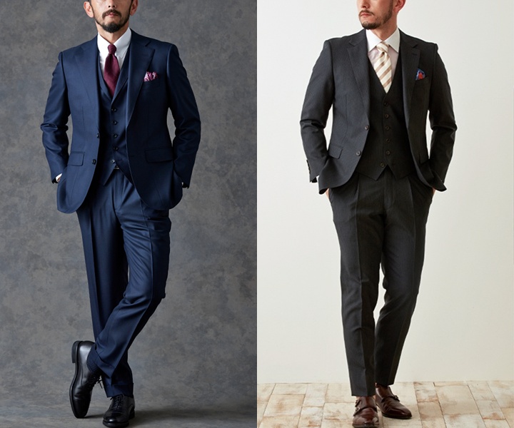 1.スーツ:ダークカラーでサイズ感を意識