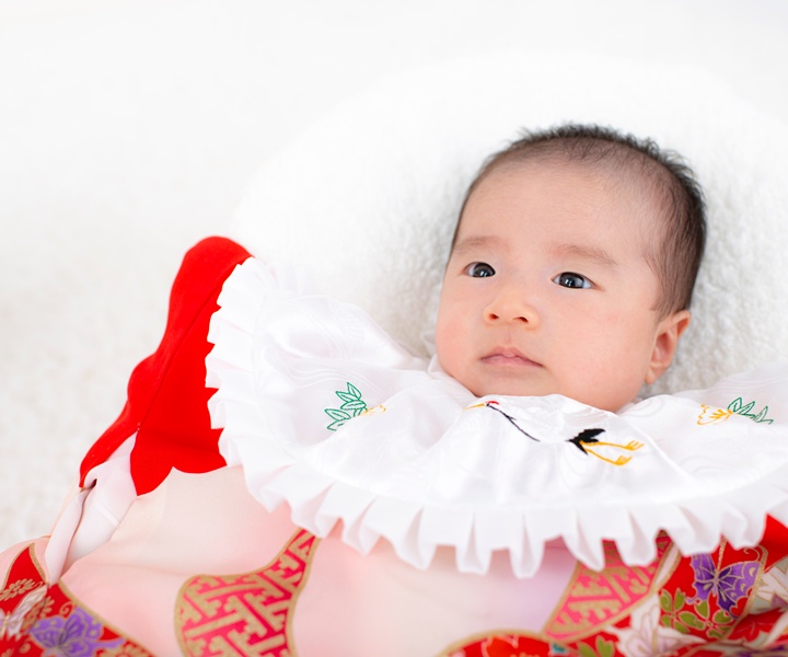 お宮参りにおける赤ちゃんの服装は、伝統的には白羽二重(しろはぶたえ)の上に祝着(のしめ)を羽織るのが正式とされています。白羽二重には赤ちゃんの清らかさを象徴する意味が込められており、その上に色鮮やかな祝着をかけることで、一層華やかな印象となります。ただし最近は、赤ちゃんの着心地や負担の少なさを重視し、ベビードレスやカバーオールなどの洋装を選ぶ家庭も増えています。お宮参りは生後1か月前後に行われることが多いため、赤ちゃんの体温調整や季節の気候への配慮が大切です。赤ちゃんが快適に過ごせることを第一に考えましょう。