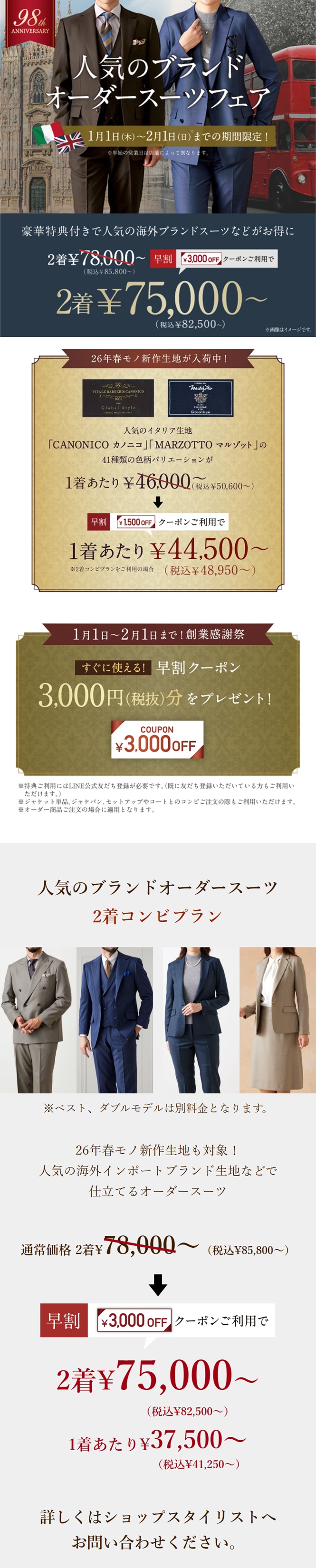 人気ブランドスーツなどが豪華特典付きでお得