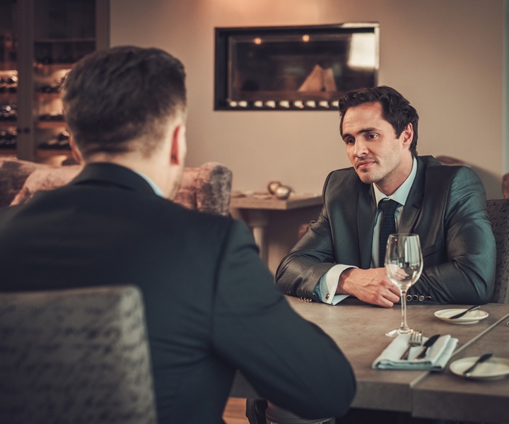接待や会食では、相手に安心感を与えるような穏やかで親しみやすいスーツスタイルが理想です。