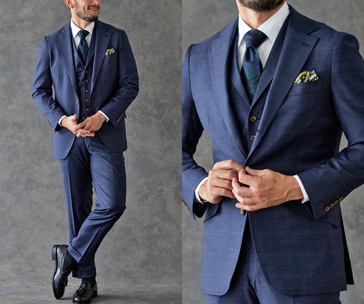 オーダースーツを仕立てる際は、体型をすっきり見せつつ、快適に過ごせる仕様にしましょう。ナチュラルショルダータイプのジャケットに、「ワンタック」や「ツータック」などタック入りのパンツを合わせるのがおすすめです。肩や腰が動かしやすく、窮屈さを軽減することができます。デスクワークや移動が多い方も快適に着用できるでしょう。