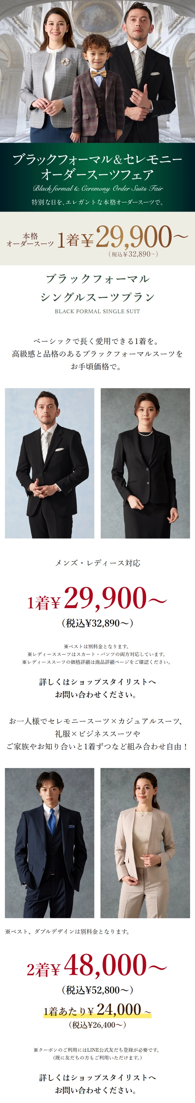 ▶本格オーダースーツ1着¥29,900~(税込¥32,890~)