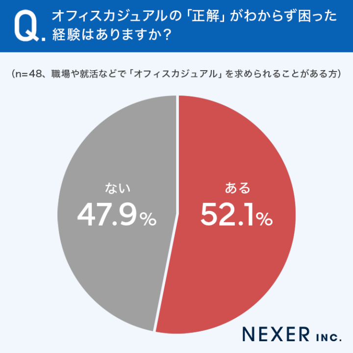 52.1%が「オフィスカジュアルの正解が分からず困った経験あり」