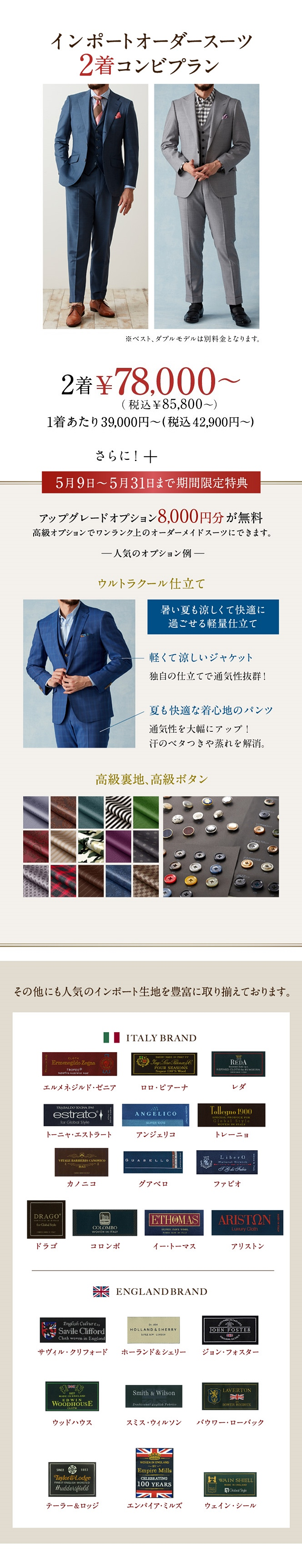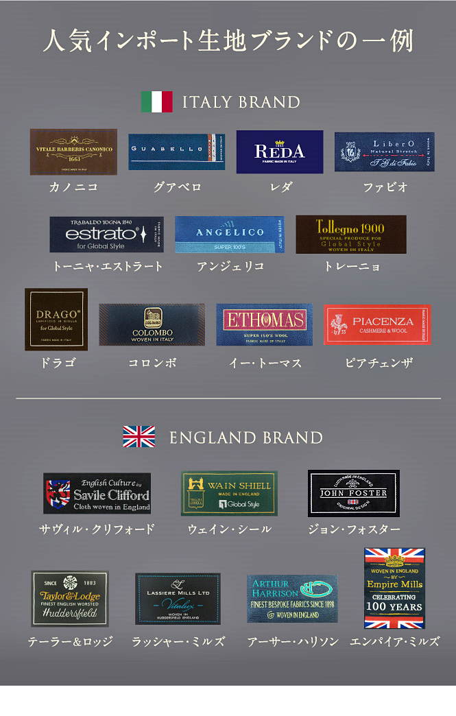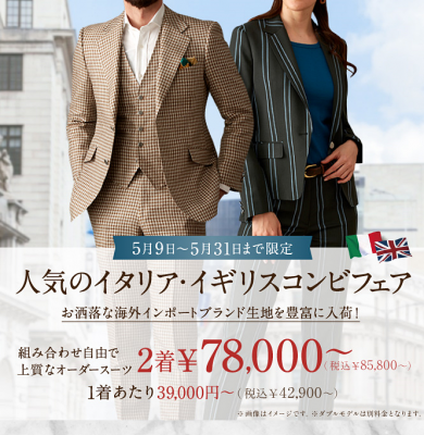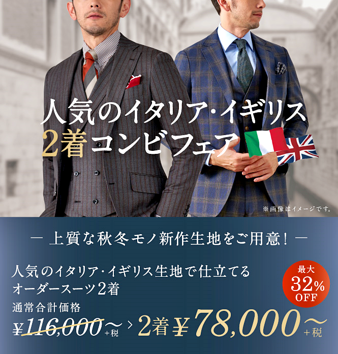 ▶人気ブランドの生地を使用したオーダースーツがまとめ買いでお得に