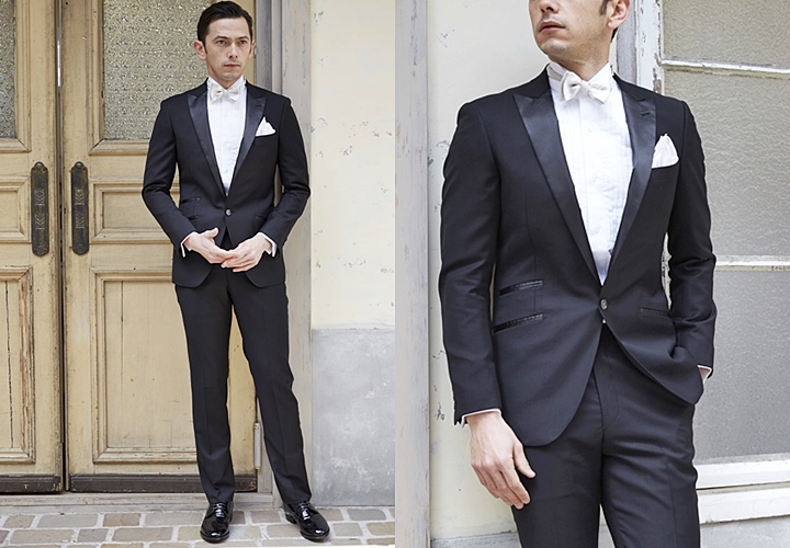 スーツモデル:ミケランジェロサルトリア ダブルモデルブラックカラーのタキシード