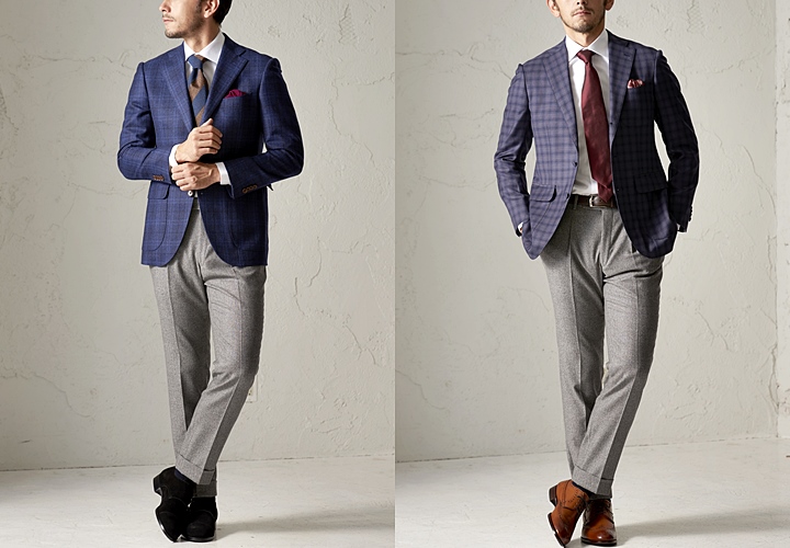 職場の雰囲気に合わせることが大切なビジネスシーンでは、基本的に「グレーのスラックス」が王道となり、ジャケットは「ネイビーのジャケット」になります。企業によってラフな服装が許される場合は、ダブルのジャケットでお洒落に決めるのも良いでしょう。