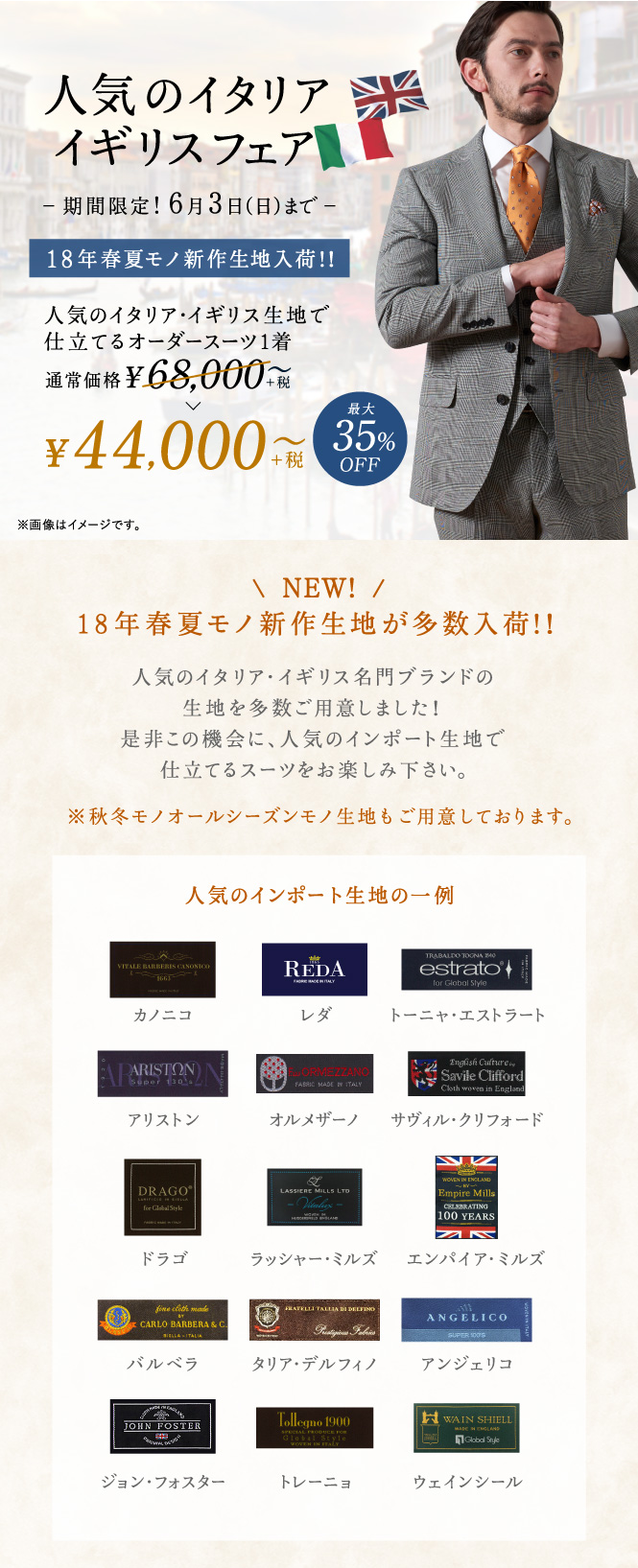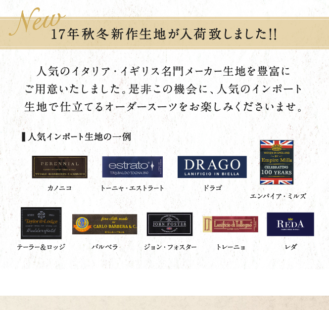 ▶本格オーダースーツ2着¥46,000~(税込¥50,600~)