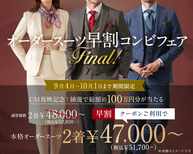 26年春モノ新作生地も対象で本格オーダースーツを