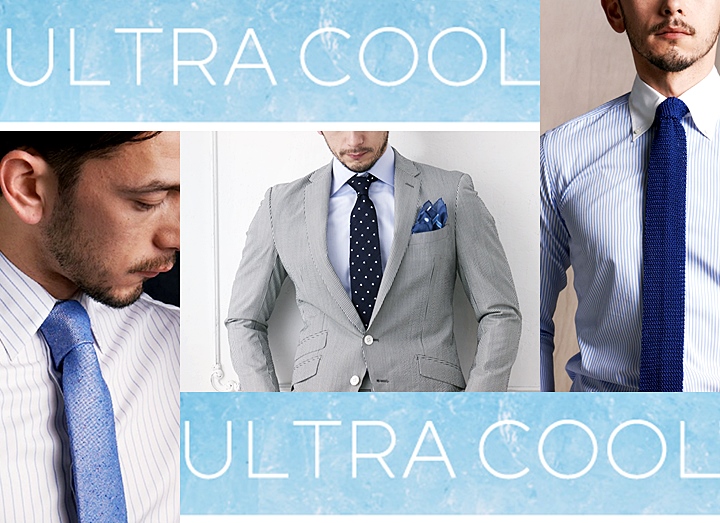 クールビズというわけではないですが、「シャツ+ジャケット+ネクタイ」でも涼しげなスタイルになります。クールで爽やかな印象の青系と、清潔感のある白系のバランスを上手く取り入れると、普段のスーツスタイルも、涼しげな印象にすることができます。