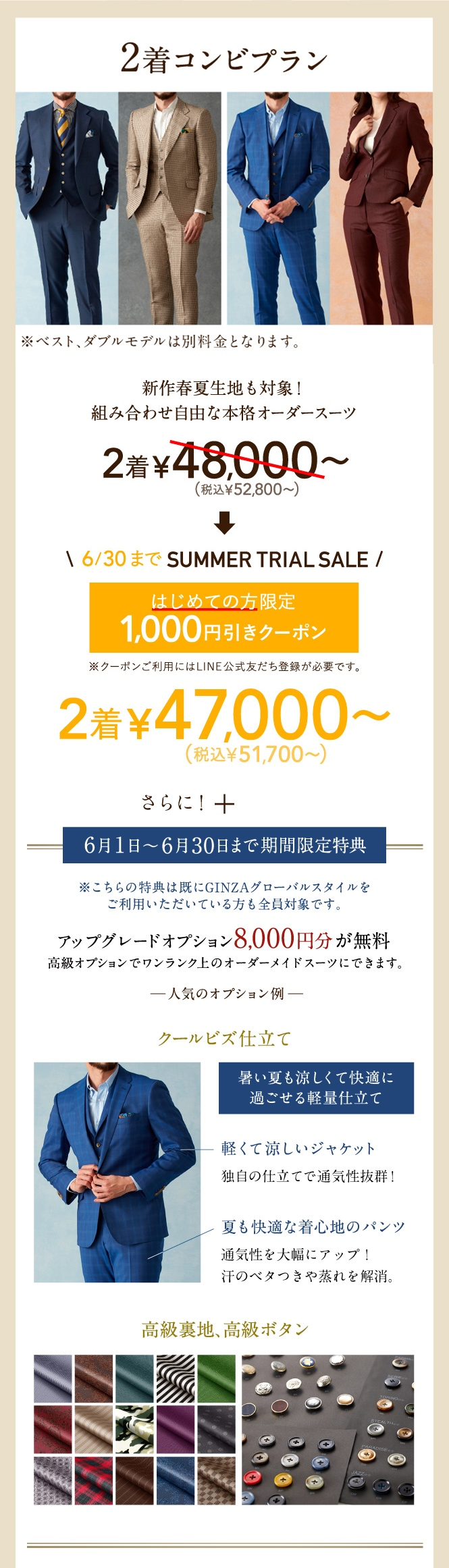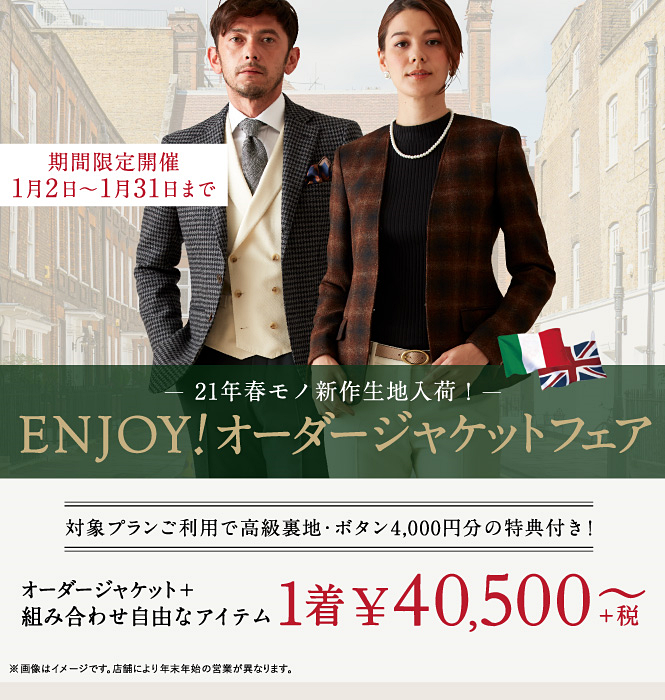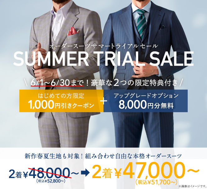 ▶本格オーダースーツ2着¥46,000~(税込¥50,600~)