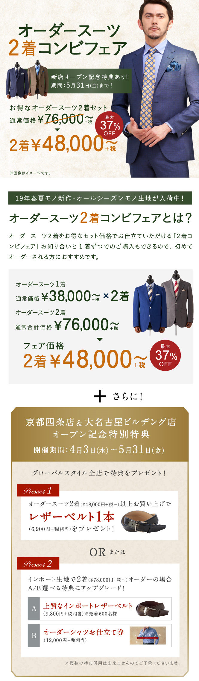 26年春モノ新作生地も対象で本格オーダースーツを