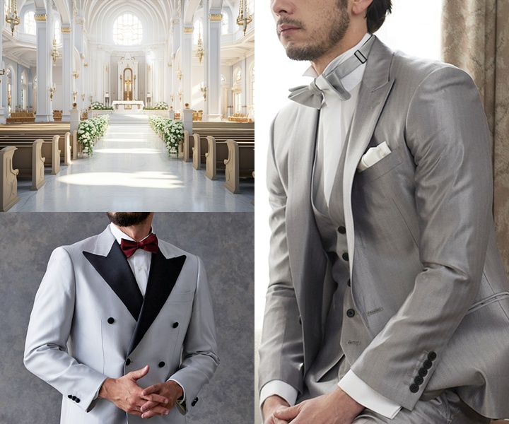 新郎におすすめのシルバースーツ・タキシードコーデ