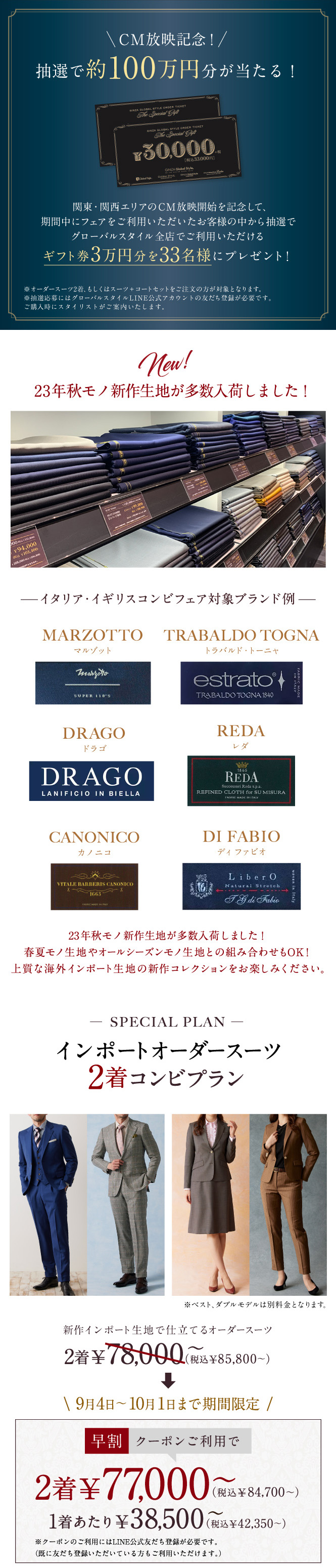 人気ブランドスーツなどが豪華特典付きでお得