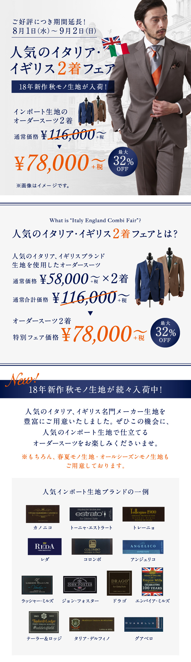 ▶人気ブランドの生地を使用したオーダースーツがまとめ買いでお得に
