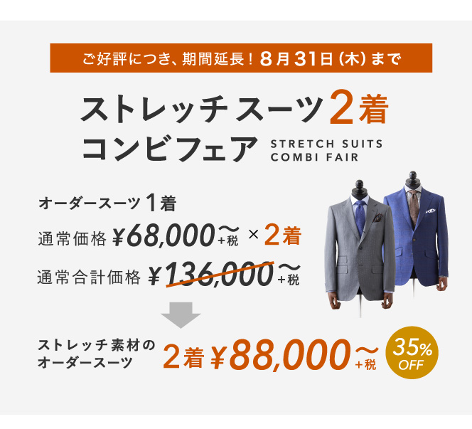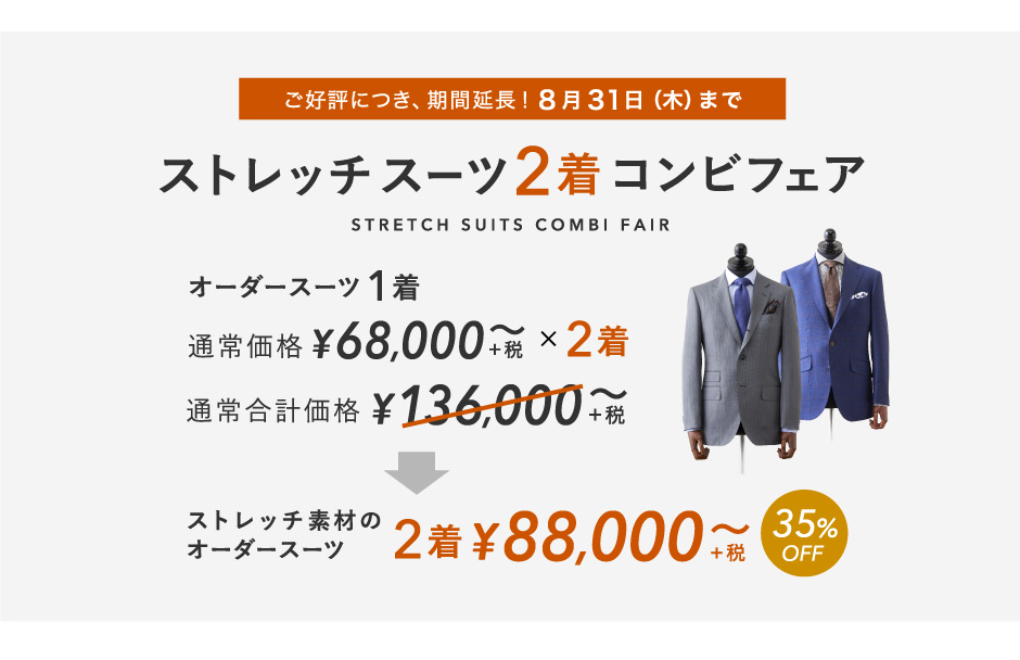 【新作生地入荷しました!】快適ストレッチ生地のオーダースーツが2着88,000円