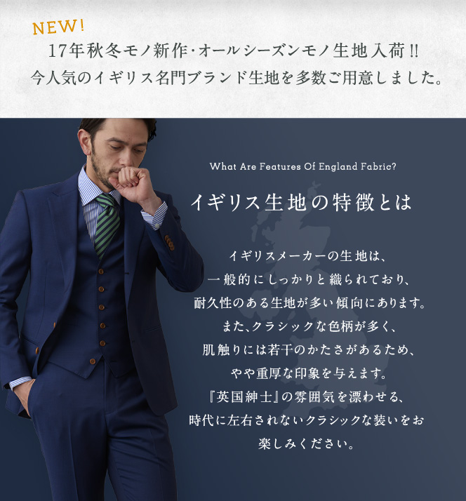 【17年秋冬新作生地入荷!】人気のイギリス生地を使用したオーダースーツフェア