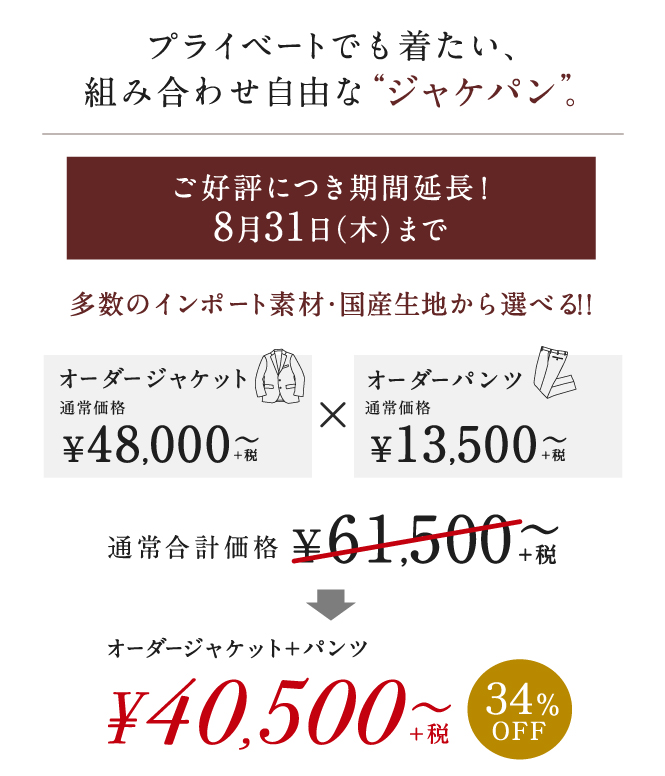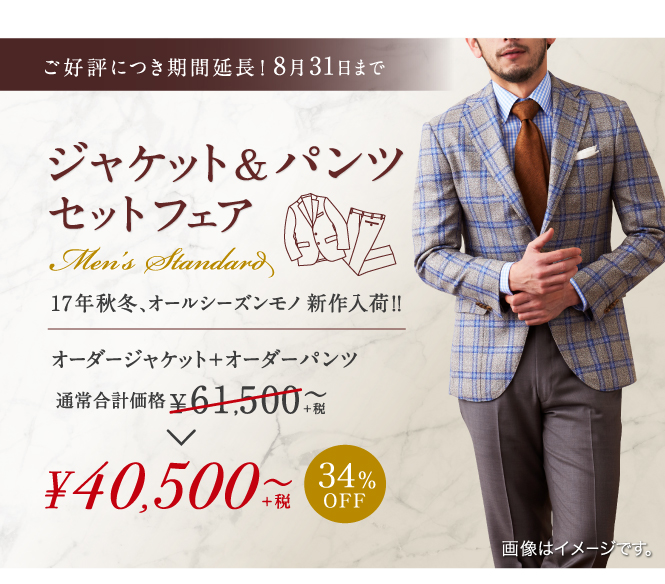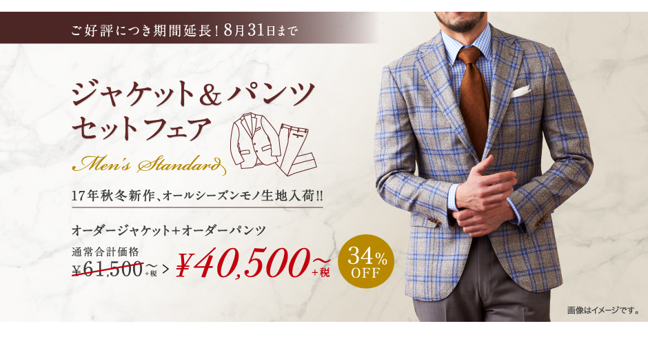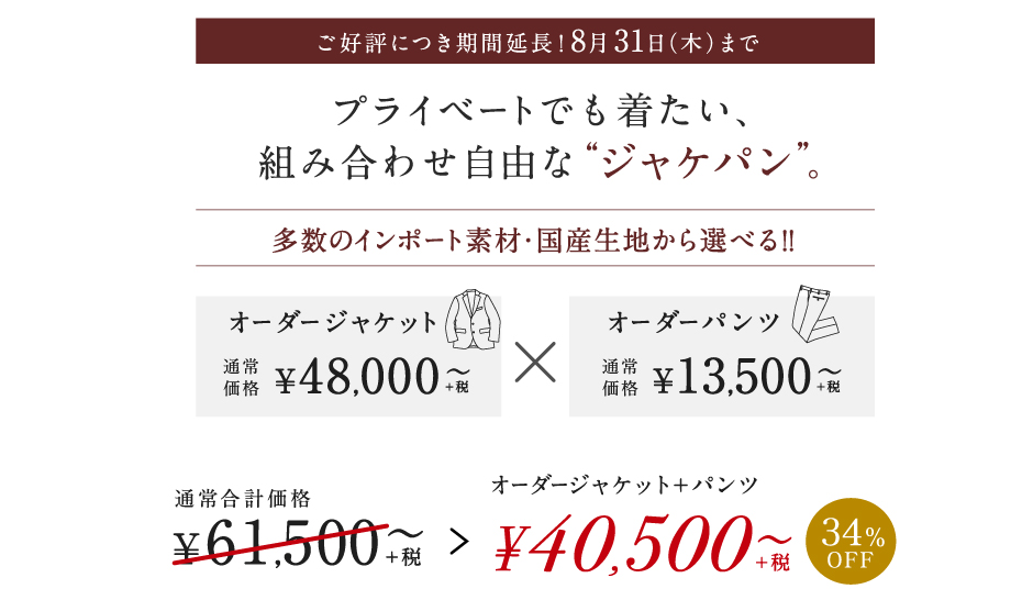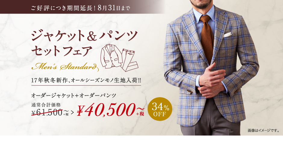 ビジネスシーンをお洒落に!人気インポート生地のジャケパンセットが40,500円〜