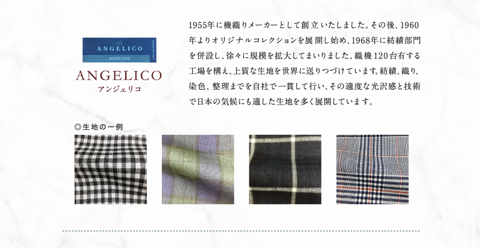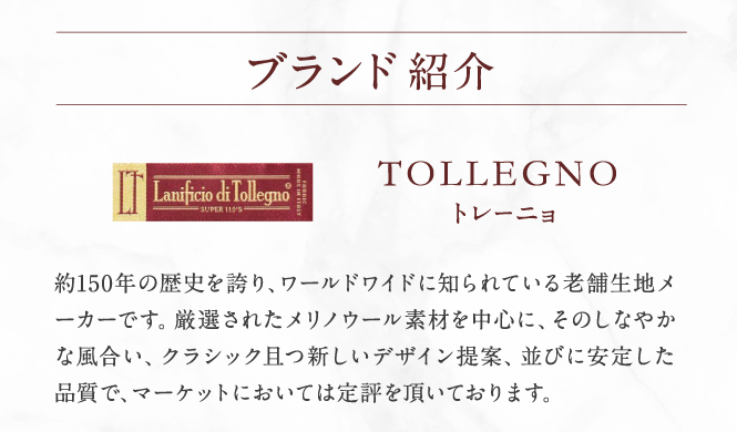 従来からある重厚な英国風仕立てを アレンジして薄めのパットやソフトな毛芯を用いています。 デザイン的にも高めの釦位置や強調された 裾のカッタウェイライン、スラントやチェンジポケットなど ブリテッシュスタイルの新しい息吹を体感して下さい。