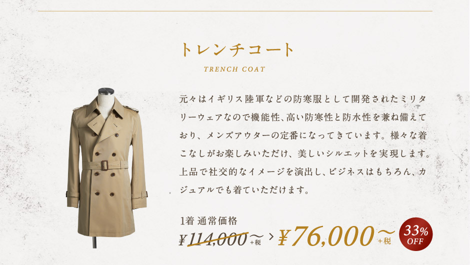 【オーダースーツとセットでお得!】デザイン豊富なオーダーコートフェア