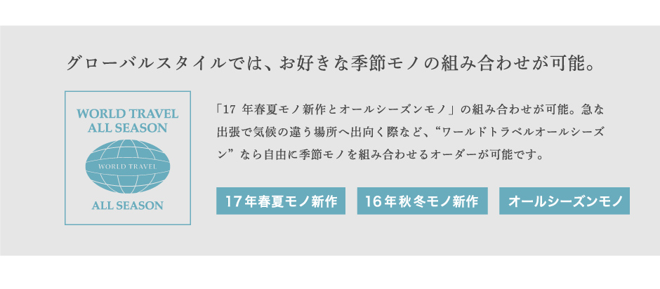 フェア情報のページです。グローバルスタイル(Global Style)では、本格オーダースーツが1着2万円台~!約5,000種類の生地をリーズナブルな価格でご用意しております。東京都・神奈川県(横浜)・埼玉県(大宮)・千葉県・静岡県・愛知県(名古屋)・大阪府(梅田/なんば)・奈良県・京都府・兵庫県(神戸)・広島県・福岡県(天神/博多/北九州)・北海道(札幌)・宮城県(仙台)・熊本県など全国40店舗に展開。