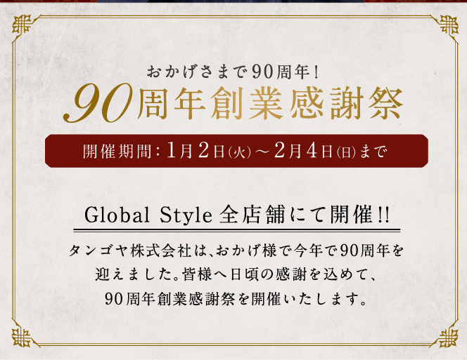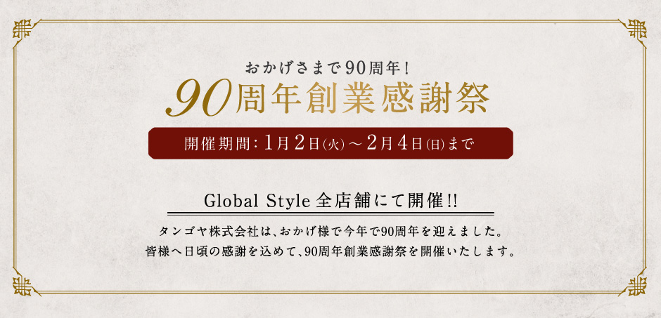 おかげ様で90周年!【創業感謝祭】をグローバルスタイル全店で開催します!