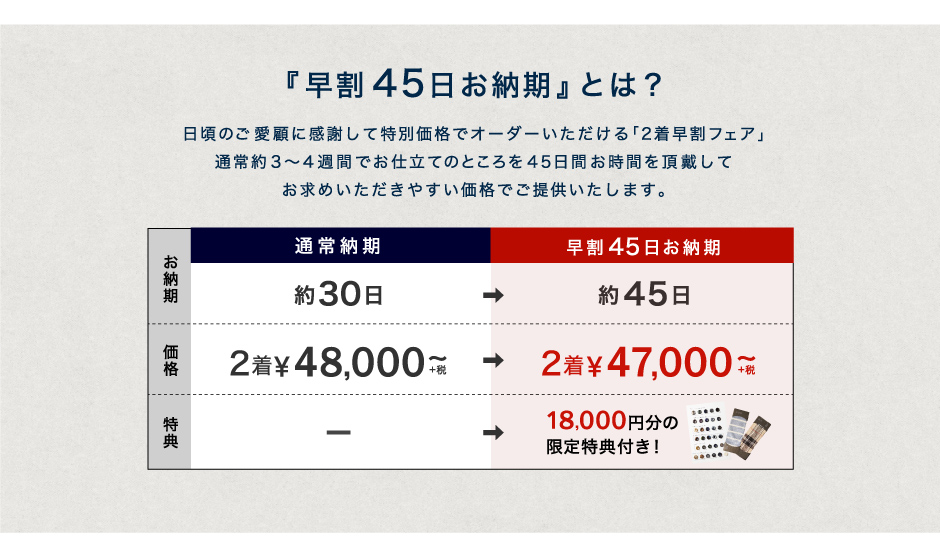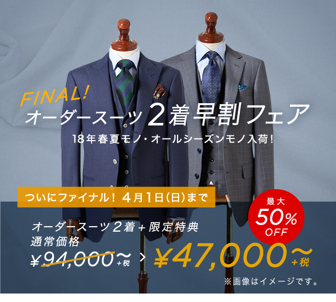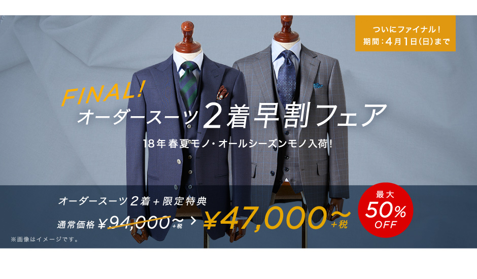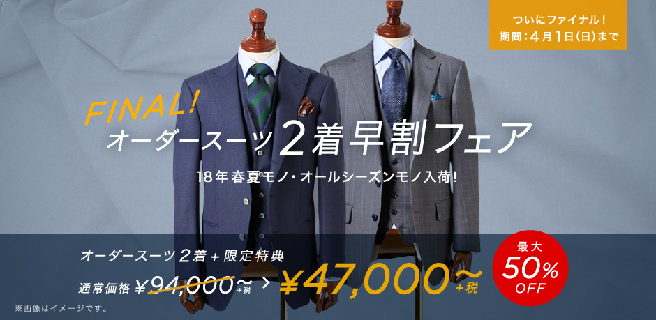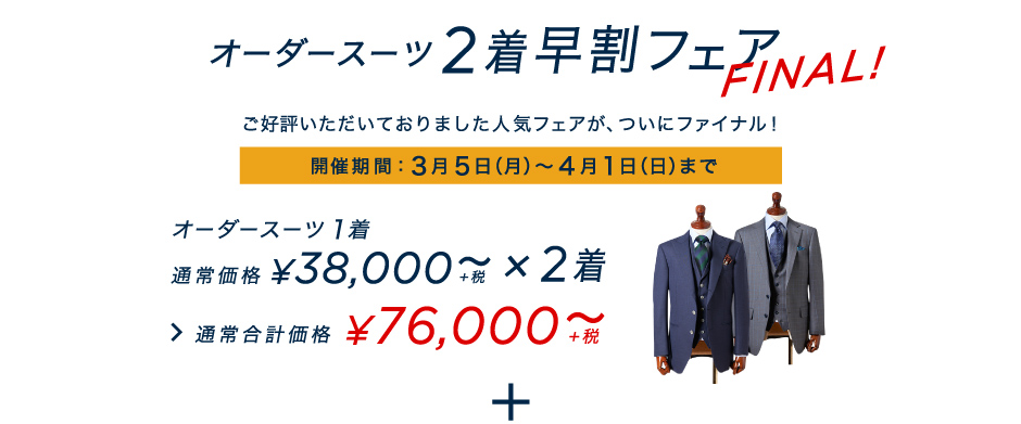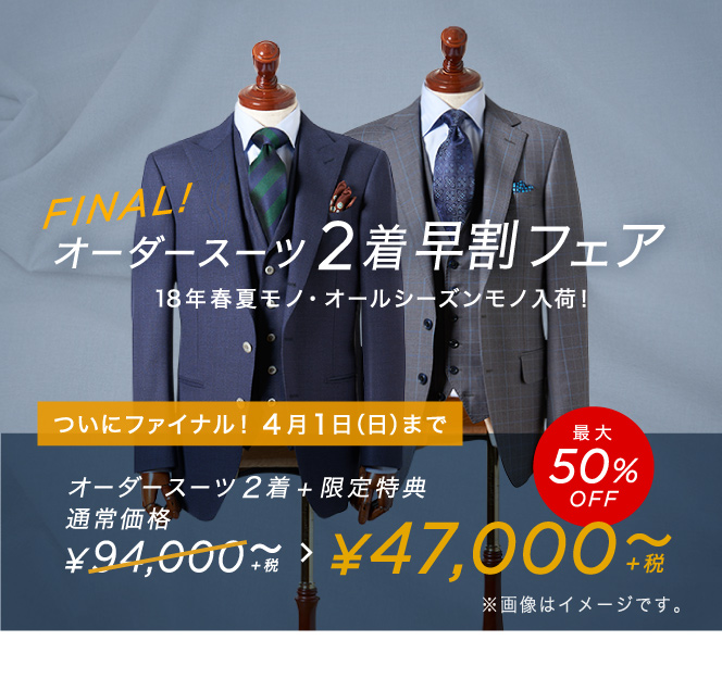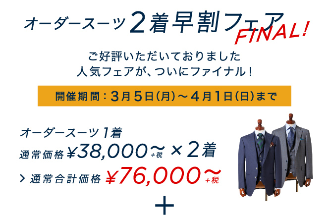 ついにファイナル!【早割】オーダースーツ2着47,000円~+限定特典付き!