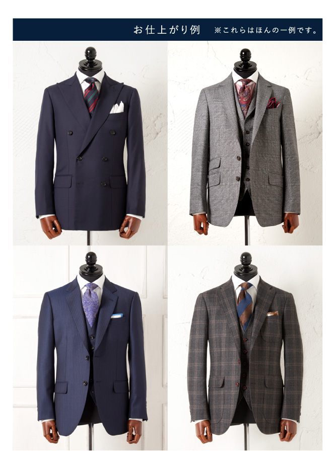 従来からある重厚な英国風仕立てを アレンジして薄めのパットやソフトな毛芯を用いています。 デザイン的にも高めの釦位置や強調された 裾のカッタウェイライン、スラントやチェンジポケットなど ブリテッシュスタイルの新しい息吹を体感して下さい。
