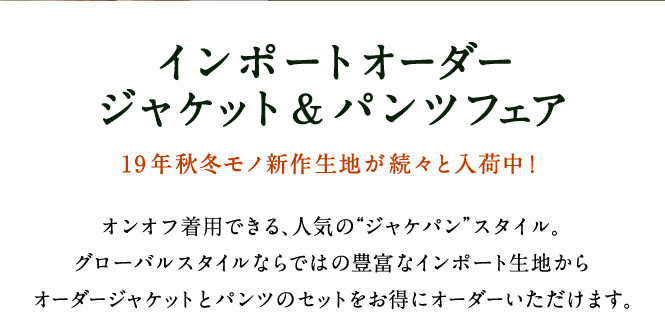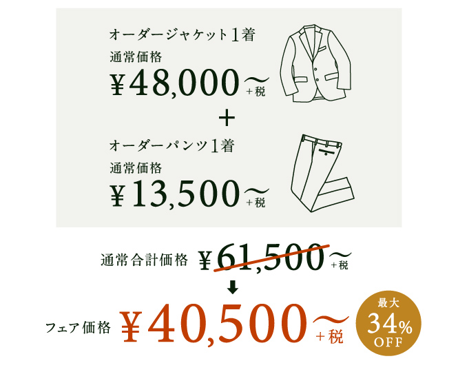 フェア情報のページです。国内最高峰のオーダースーツを東京・大阪・名古屋でコスパ価格で販売。 ジャストフィットするオーダースーツならグローバルスタイルへ。お客様の要望に合わせたオーダーシャツ、オーダーシューズなども取り扱っております。