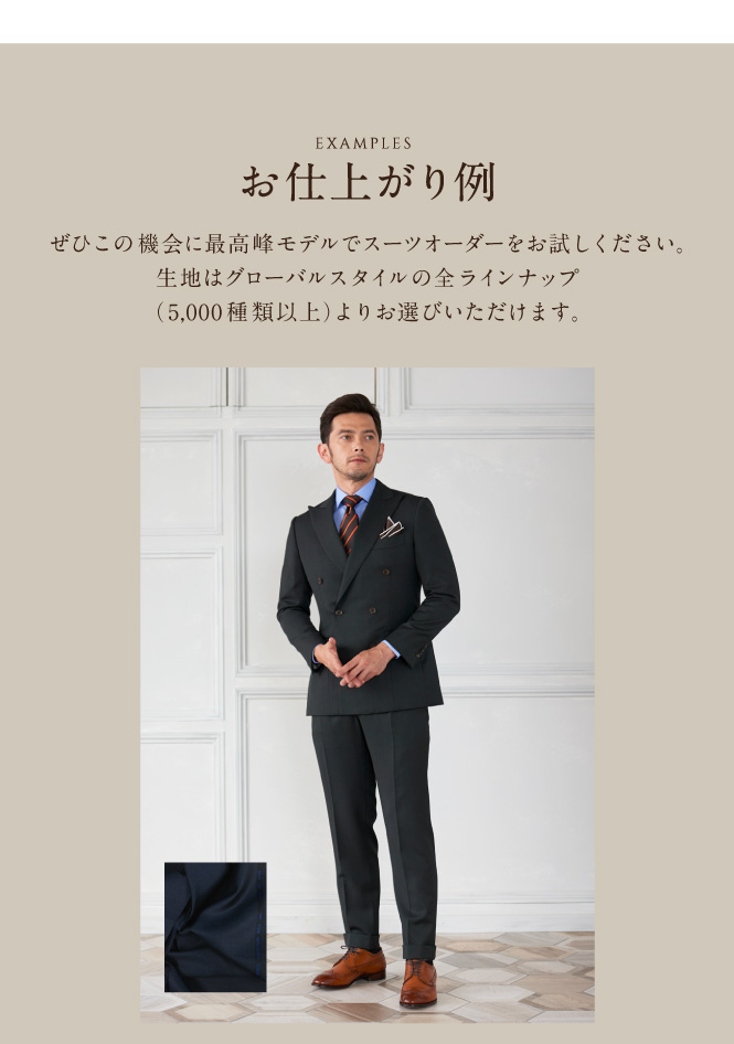 フェア情報のページです。グローバルスタイル(Global Style)では、本格オーダースーツが1着2万円台~!約5,000種類の生地をリーズナブルな価格でご用意しております。東京都・神奈川県(横浜)・埼玉県(大宮)・千葉県・静岡県・愛知県(名古屋)・大阪府(梅田/なんば)・奈良県・京都府・兵庫県(神戸)・広島県・福岡県(天神/博多/北九州)・北海道(札幌)・宮城県(仙台)・熊本県など全国40店舗に展開。