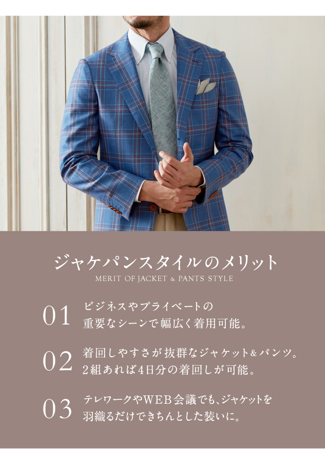 肩パットや芯地を極力排したアンコン仕立てと、パッチポケットなどのディテールが、カジュアル感を強調しています。より軽さを追求したコンフォータブルな着用感を体感できるモデルです。ON/OFF共用できる、着回しのきくモデルです。