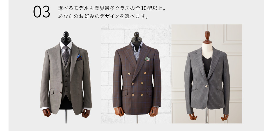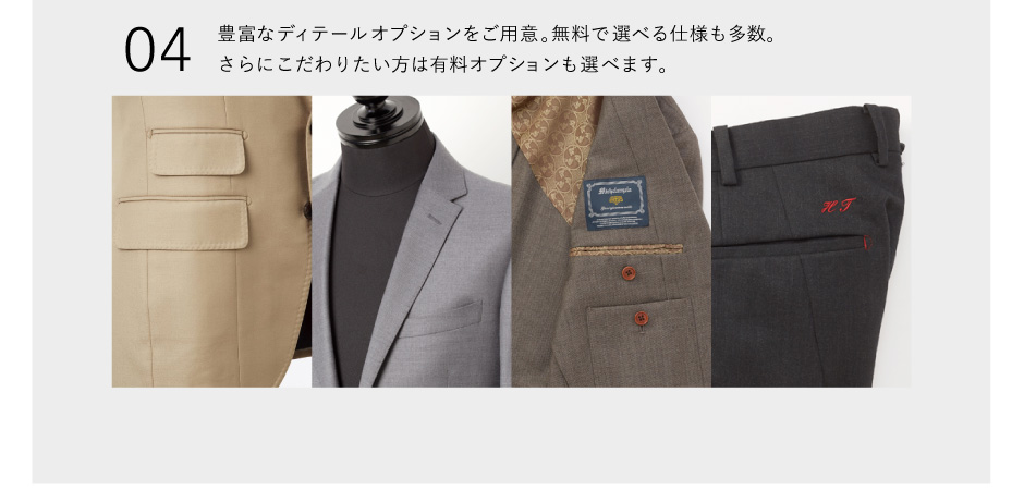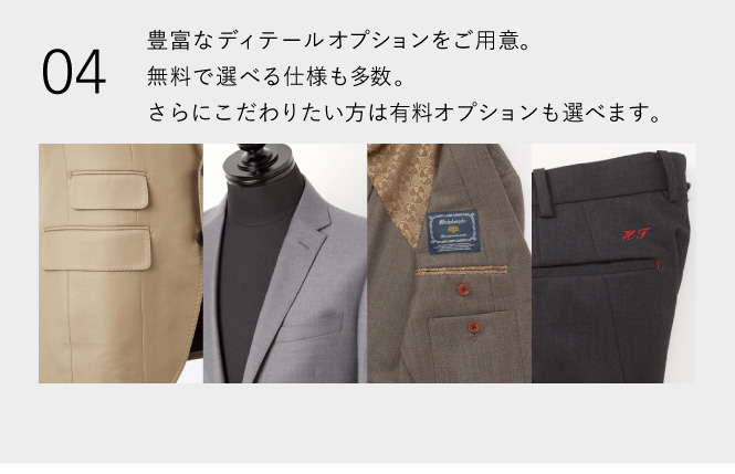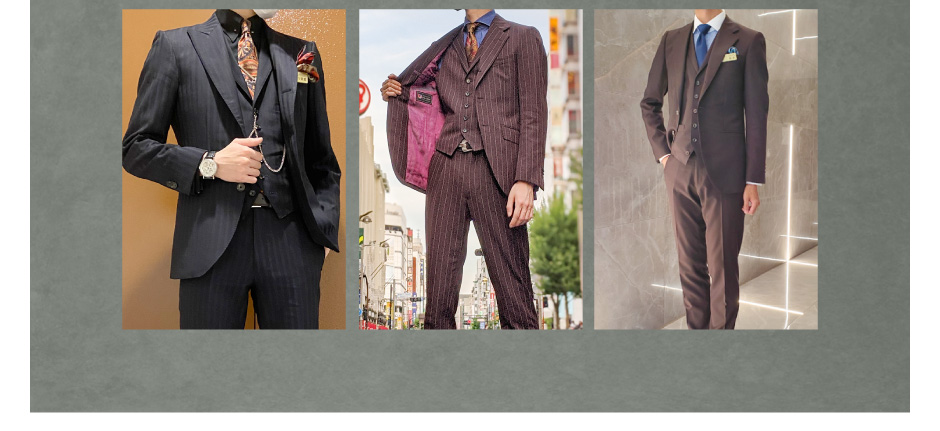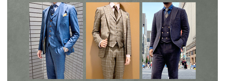 従来からある重厚な英国風仕立てを アレンジして薄めのパットやソフトな毛芯を用いています。 デザイン的にも高めの釦位置や強調された 裾のカッタウェイライン、スラントやチェンジポケットなど ブリテッシュスタイルの新しい息吹を体感して下さい。