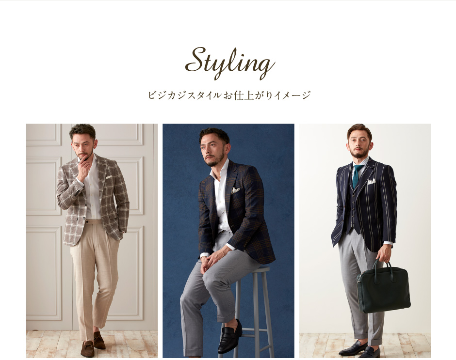 従来からある重厚な英国風仕立てを アレンジして薄めのパットやソフトな毛芯を用いています。 デザイン的にも高めの釦位置や強調された 裾のカッタウェイライン、スラントやチェンジポケットなど ブリテッシュスタイルの新しい息吹を体感して下さい。