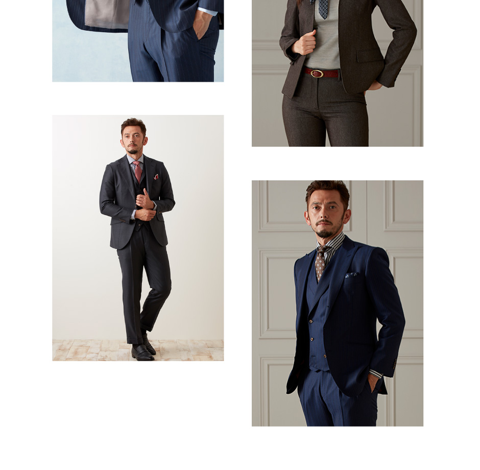 従来からある重厚な英国風仕立てを アレンジして薄めのパットやソフトな毛芯を用いています。 デザイン的にも高めの釦位置や強調された 裾のカッタウェイライン、スラントやチェンジポケットなど ブリテッシュスタイルの新しい息吹を体感して下さい。